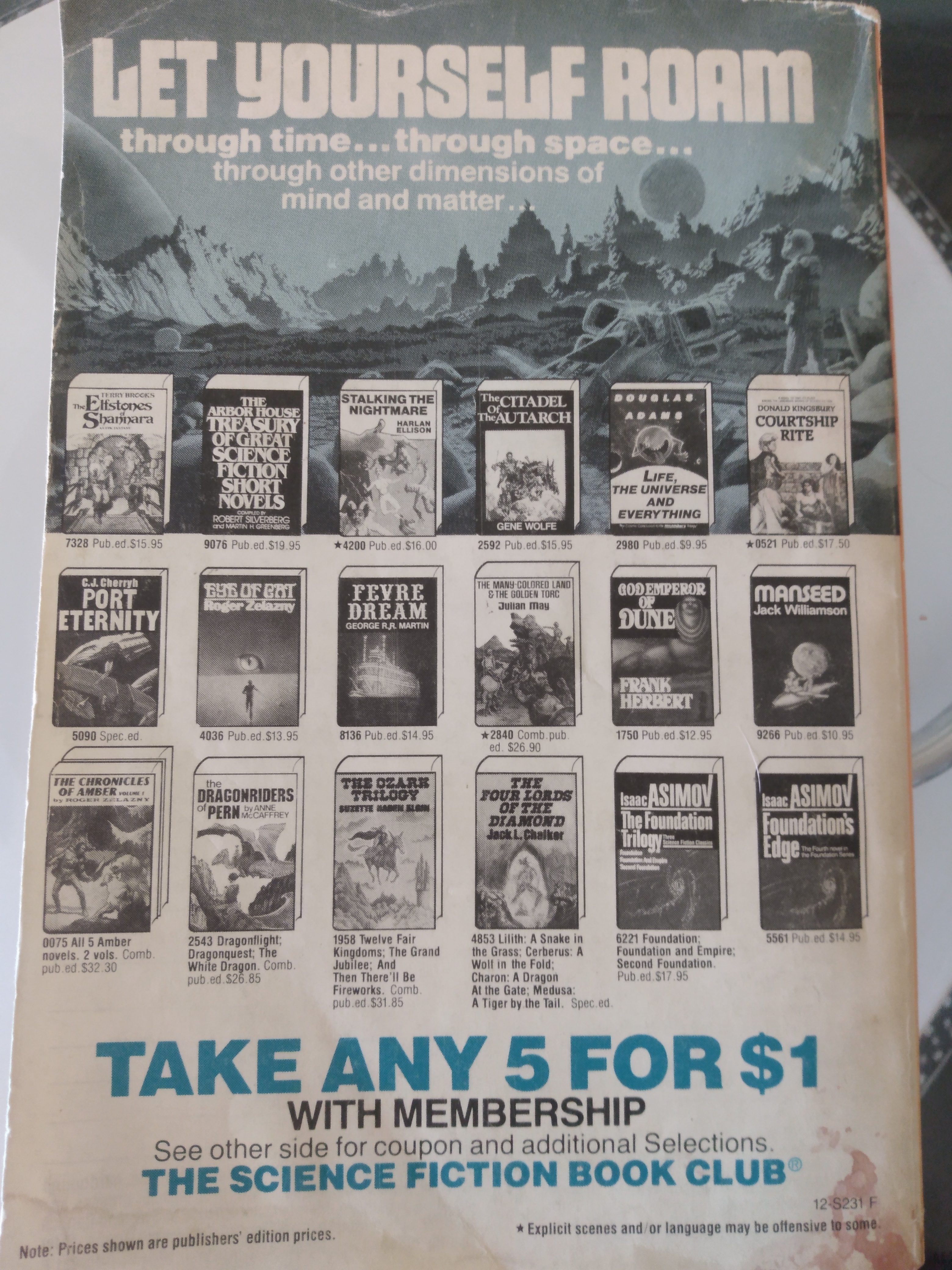 Ozma of Oz, by L. Frank Baum - A well-weathered little free library find. This and The Marvelous Land of Oz were broken apart and remixed into everyone's favorite fever-dream childhood film Return to Oz, so you know there's some extremely bizarre notions and characters zipping around in here. Ozma hasn't reached the godlike levels of power she has in the later books, so there's some actual conflict here resolved through some classic fairy-tale logic.